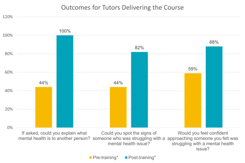 - 70% had NEVER taken part in any mental health training and yet 91% said they thought training would help them to manage their own mental health.